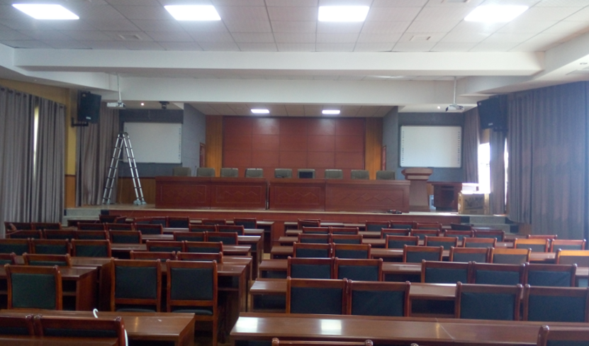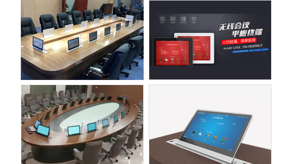 系统组成由:无纸化会议服务器+一体化触摸升降屏+视频信号编码器+扩声系统+大屏幕视频显示等构成。