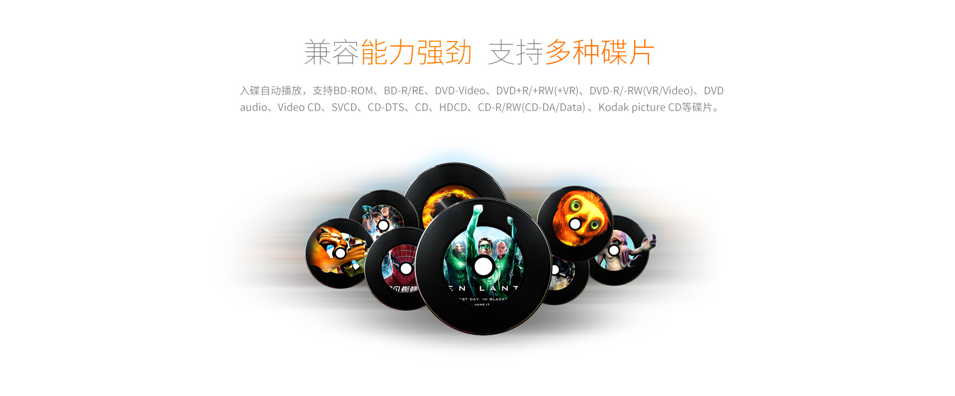 ![]() | 支持BD-ROM、BD-R/RE、DVD-Video、DVD+R/+RW(+VR)、DVD-R/-RW、DVD audio、VCD、 SVCD、CD-DTS、CD、HDCD、CD-R/RW、Kodak picture CD 、SACD(只有普通CD效果) |