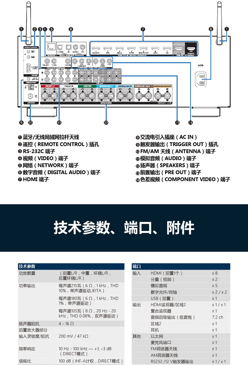 Denon天龙 AVR-X3300 7.2家庭影院功放