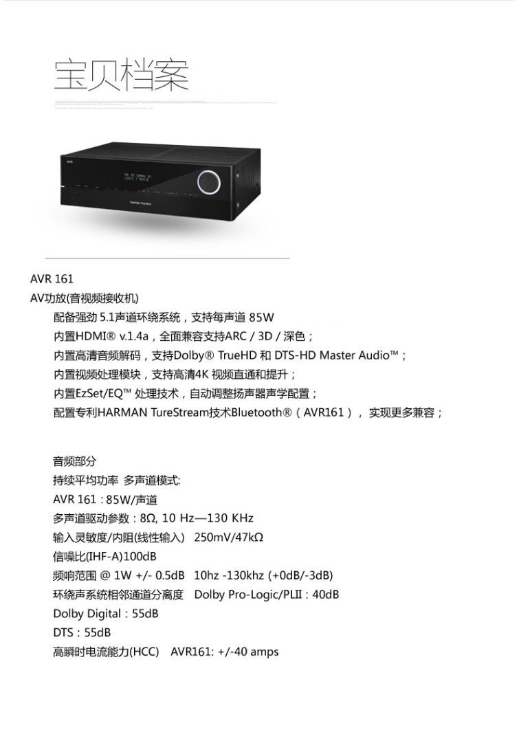 JBL哈曼卡顿harman AVR 161S家用AV功放
