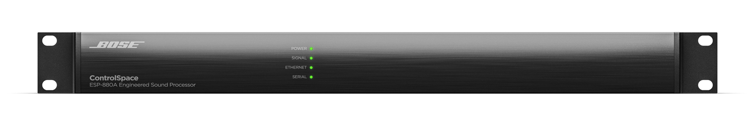板载连接包括用于进行配置和控制的后面板以太网、RS-232 串口、5 路控制输入、5 路控制输出和可发送数字音频至 Bose 功放的 8 通道 Bose AmpLink 端口。ESP-880A 还支持与行业标准控制系统集成,如 Crestron 和 AMX。并且可与任何兼容的 Bose Professional 终端用户控制配件(如 ControlCenter 区域控制器以及支持移动设备的 ControlSpace Remote)共同使用。