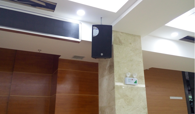 音箱,分别安装于观众席两侧,以及中间承重柱上,既保证了会场的整体声场均匀,又不影响整个会议室的美观。为了